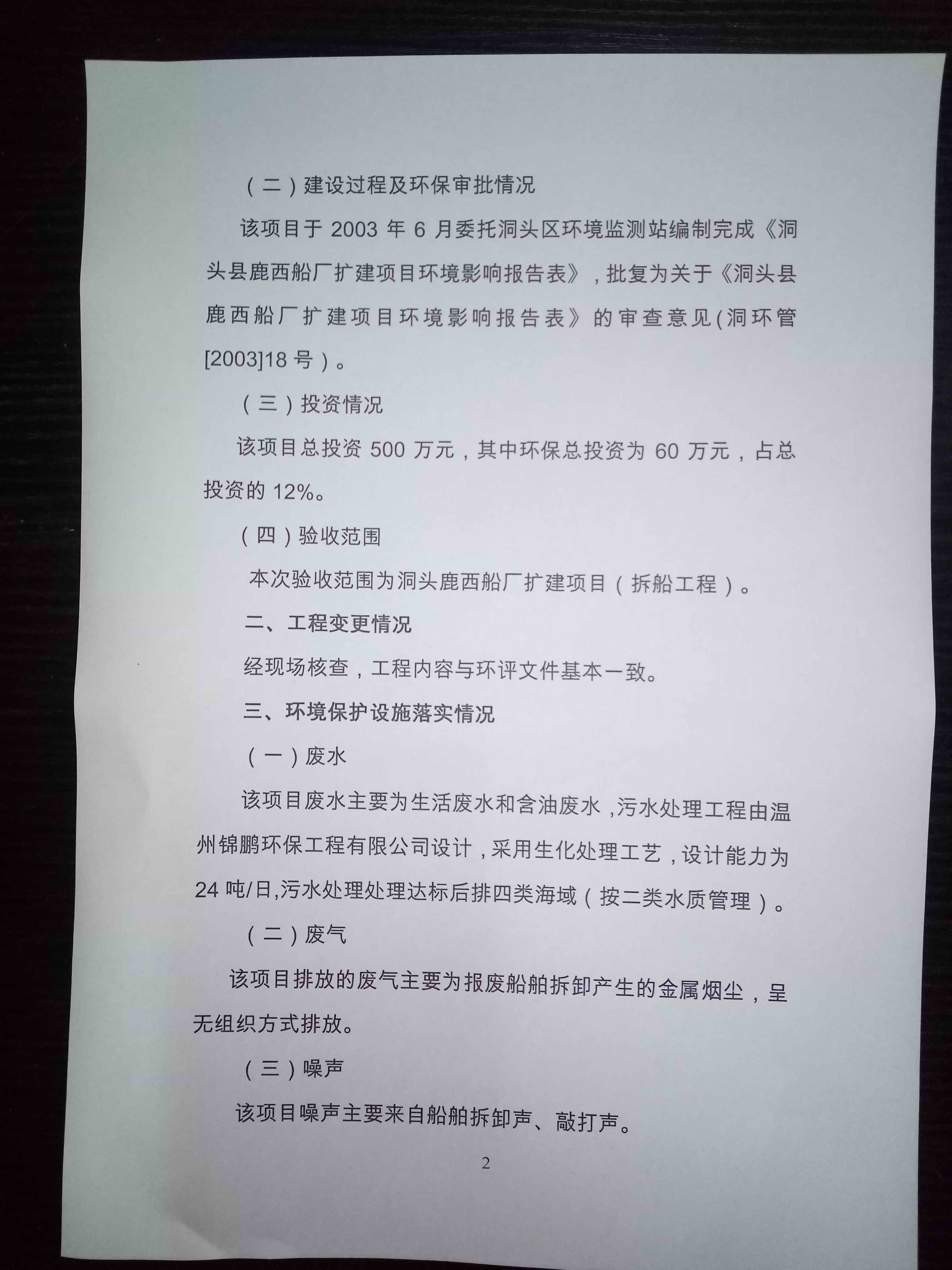 溫州市洞頭鹿西船廠擴(kuò)建項(xiàng)目竣工環(huán)境保護(hù)自行驗(yàn)收— —公示